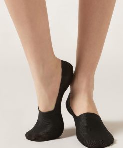 Calzedonia Women’s Cotton Invisible Socks With Silicone Edge | 019 – Black | Women’s Socks