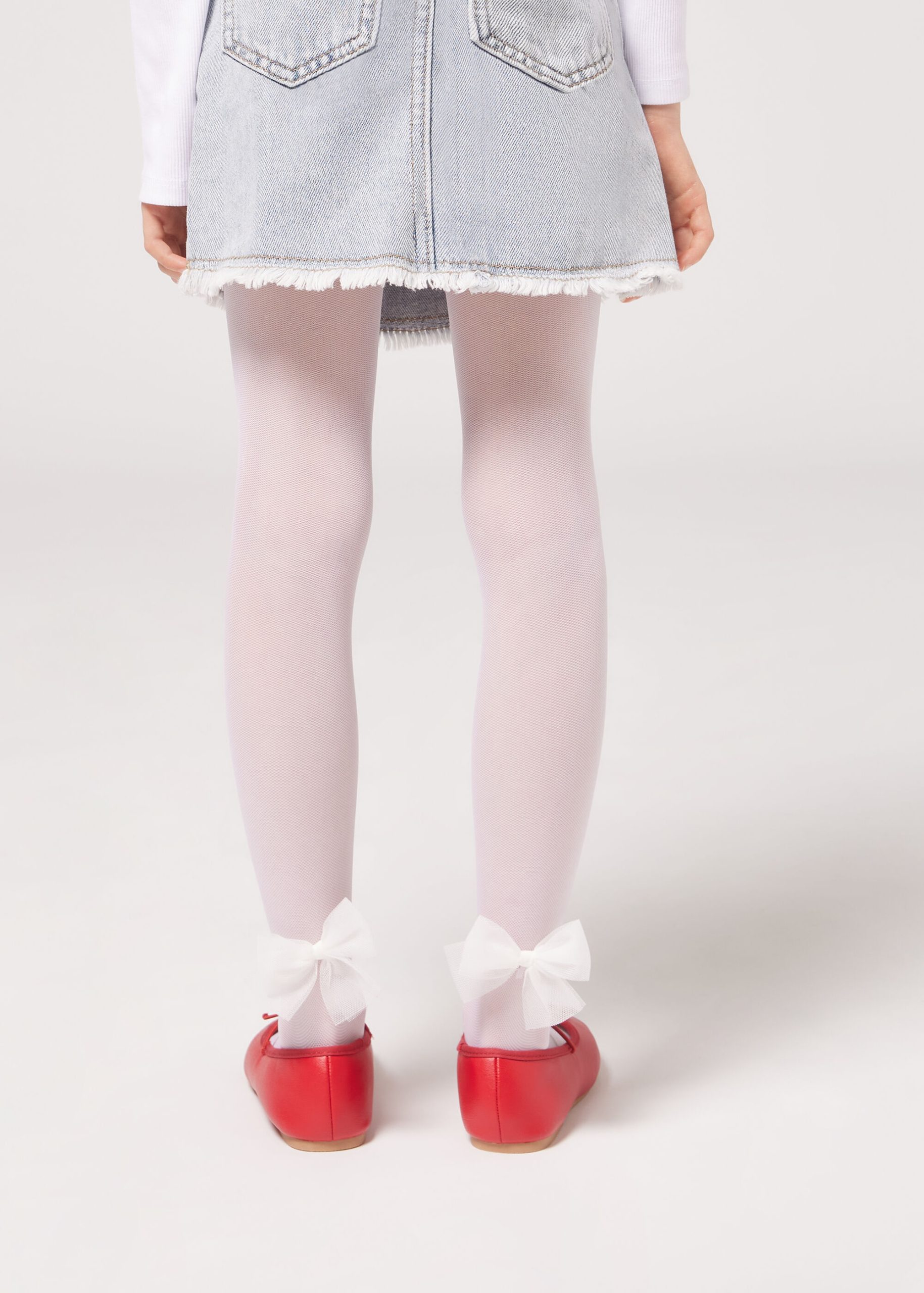 Calzedonia Kid’s Girls (2 – 12 Years) Girls’ 30 Denier Tulle Tights With Bow | 5065 – Appl. Fiocco Bianco