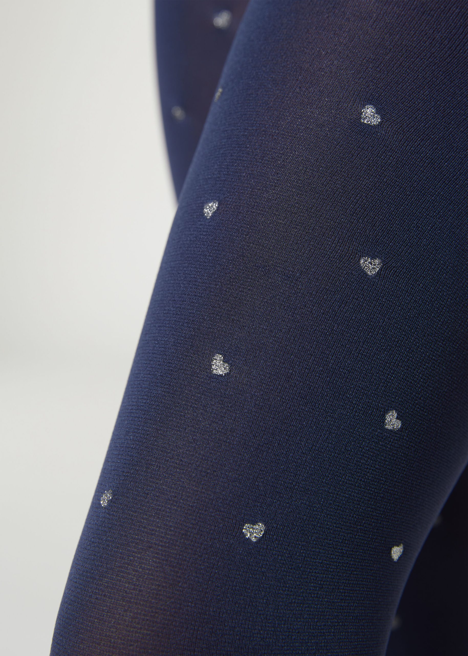Calzedonia Kid’s Girls (2 – 12 Years) Girls Opaque Tights With Glitter | 5420 – Blu Cuori Glitter