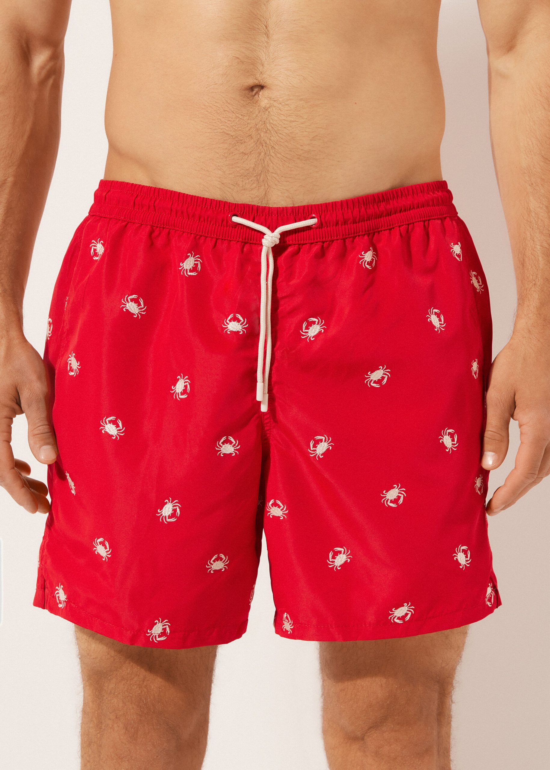 Calzedonia Men’s Patterned Swimming Trunks Formentera | 094e – Red Patterned Crabs | Men’s Swimwear