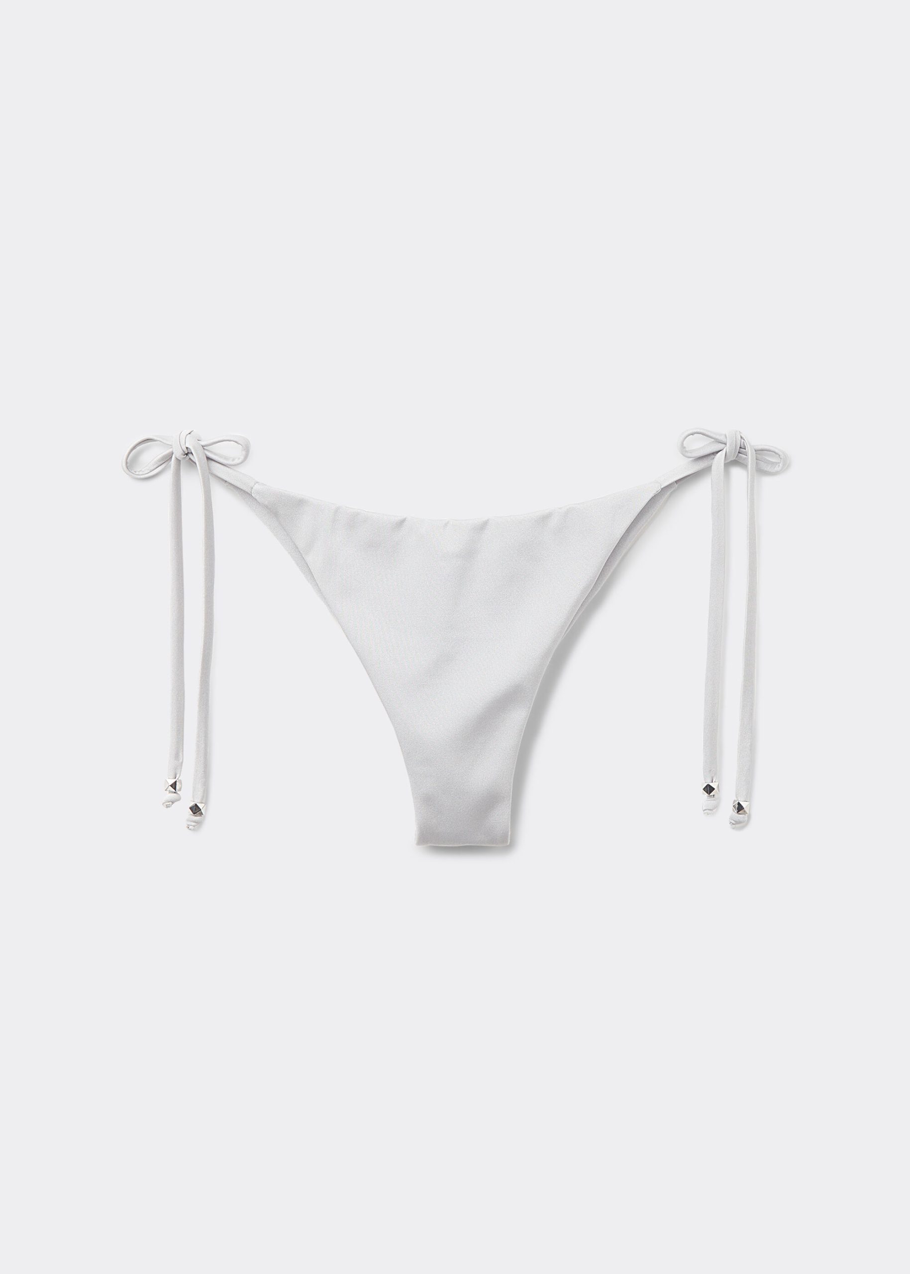 Brazilian cut bikini bottoms with side ties. Fully lined with invisible seams. Back seam for a better fit.
