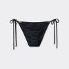 String bikini bottoms with side ties to adjust the fit. The slightly rounded waist at the front allows for both a regular and more high-cut fit, depending on one’s physique. It features a minimal fit that exalts the silhouette with a touch of sensuality and refinement. The bright silk-effect fabric embellished by elegant golden details radiates a sophisticated sensation of discrete luxury.