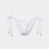 Bikini bottoms with side ties to adjust the fit, embellished with silver tips. The slightly rounded waist at the front allows for both a regular and more high-cut fit, depending on one’s physique. The style features a particularly soft three-dimensional diagonal-motif fabric. Fully lined with invisible seams.