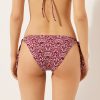 Bikini bottoms with side tie closure to adjust the fit. An elegant floral pattern on a burgundy background, creating a refined and natural look. The slightly rounded waist allows it to be worn either as normal or with the legs higher to show off the physique. Fully lined with invisible seams.