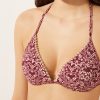 Fixed triangle bikini top with no underwire and with graduated padded cups that add volume to enhance the décolleté. An elegant floral pattern with shades of burgundy that creates a refined and natural look. The shoulder straps have eyelets on the ends so they can be hooked onto the back band or tied behind the neck. Back string tie closure.