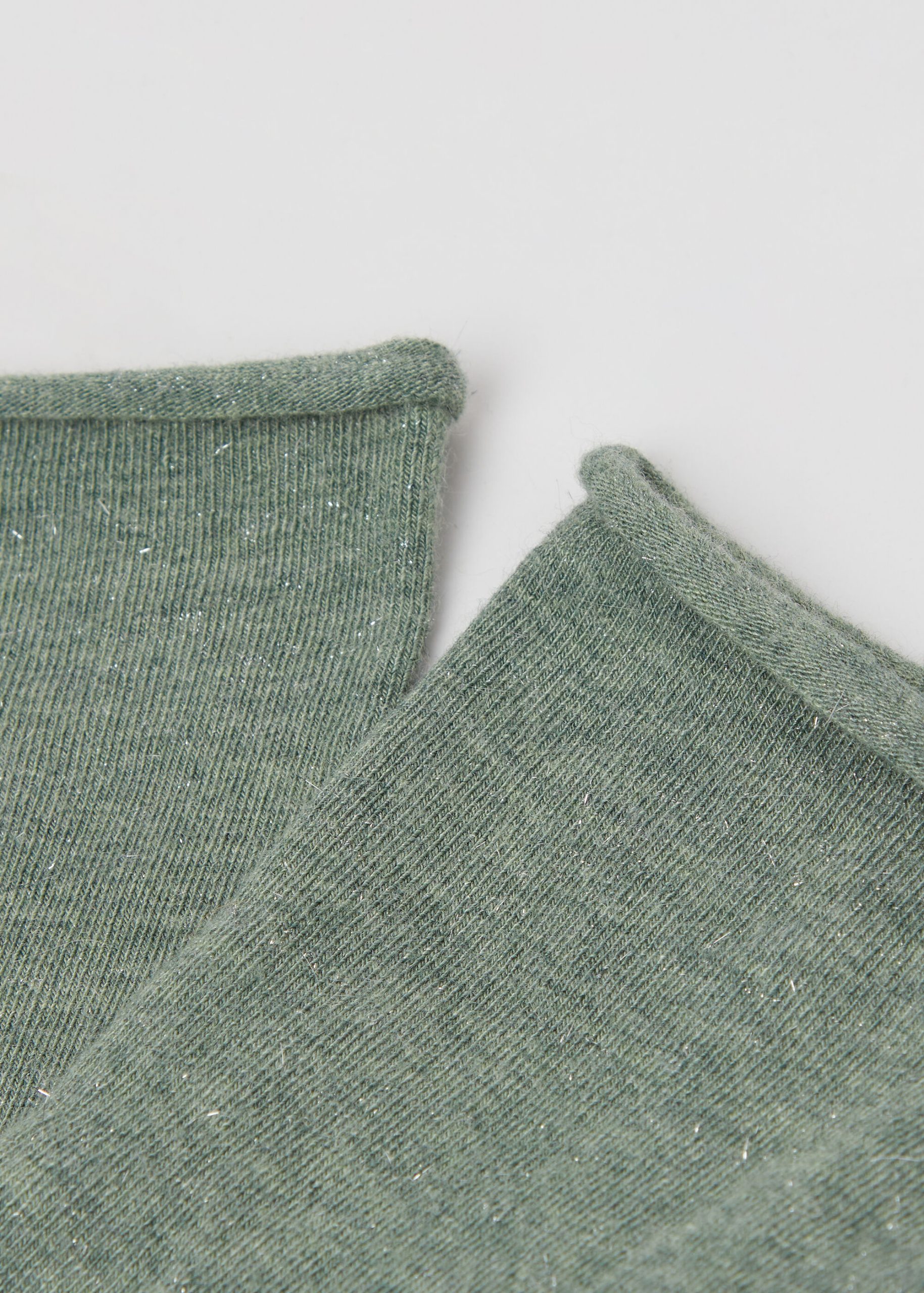 Women’s non-elastic short socks in soft cashmere with comfort trim embellished with glitter. Perfect for total comfort without sacrificing style, they offer a luxurious and warm feeling ideal for winter, adding a touch of elegance to your everyday wardrobe.