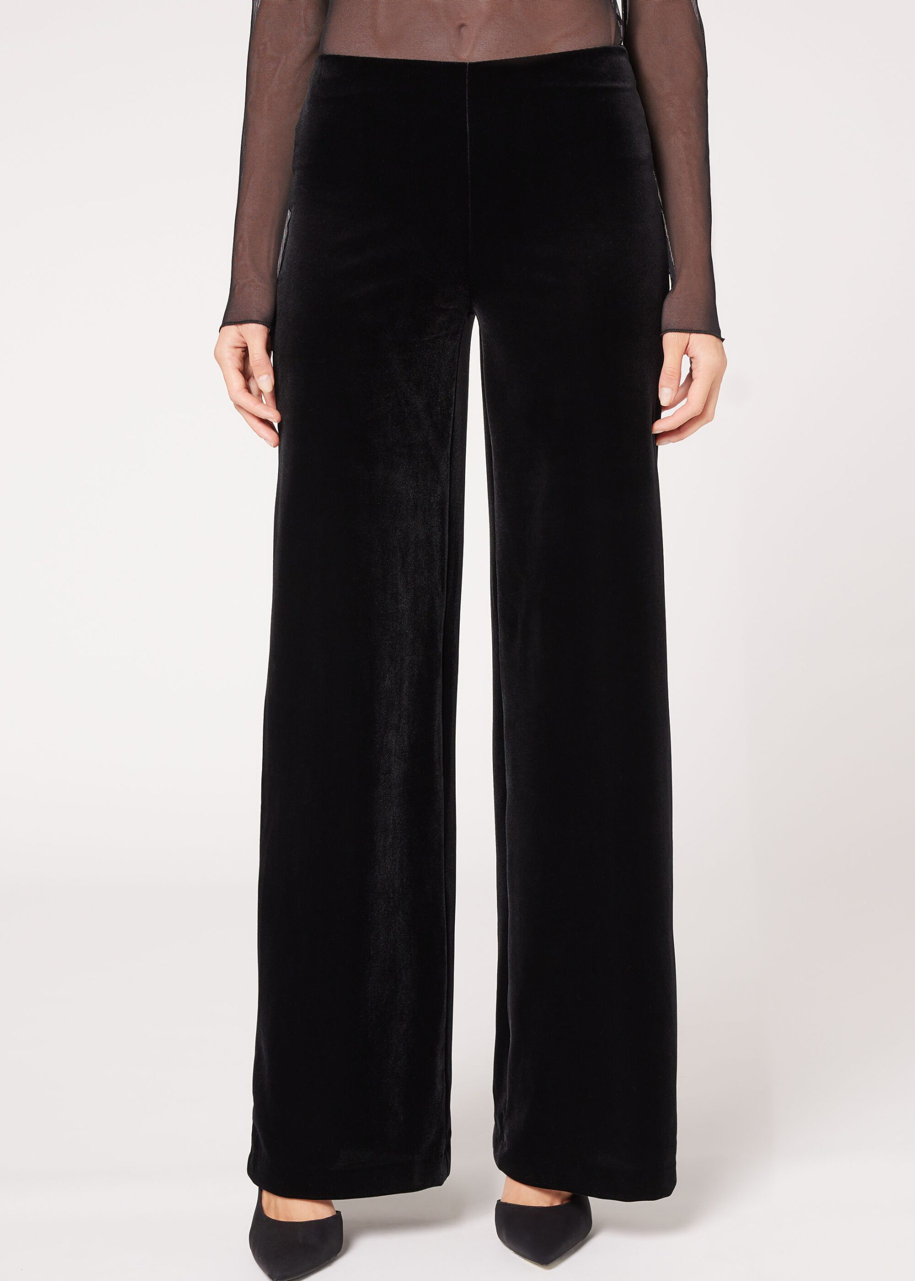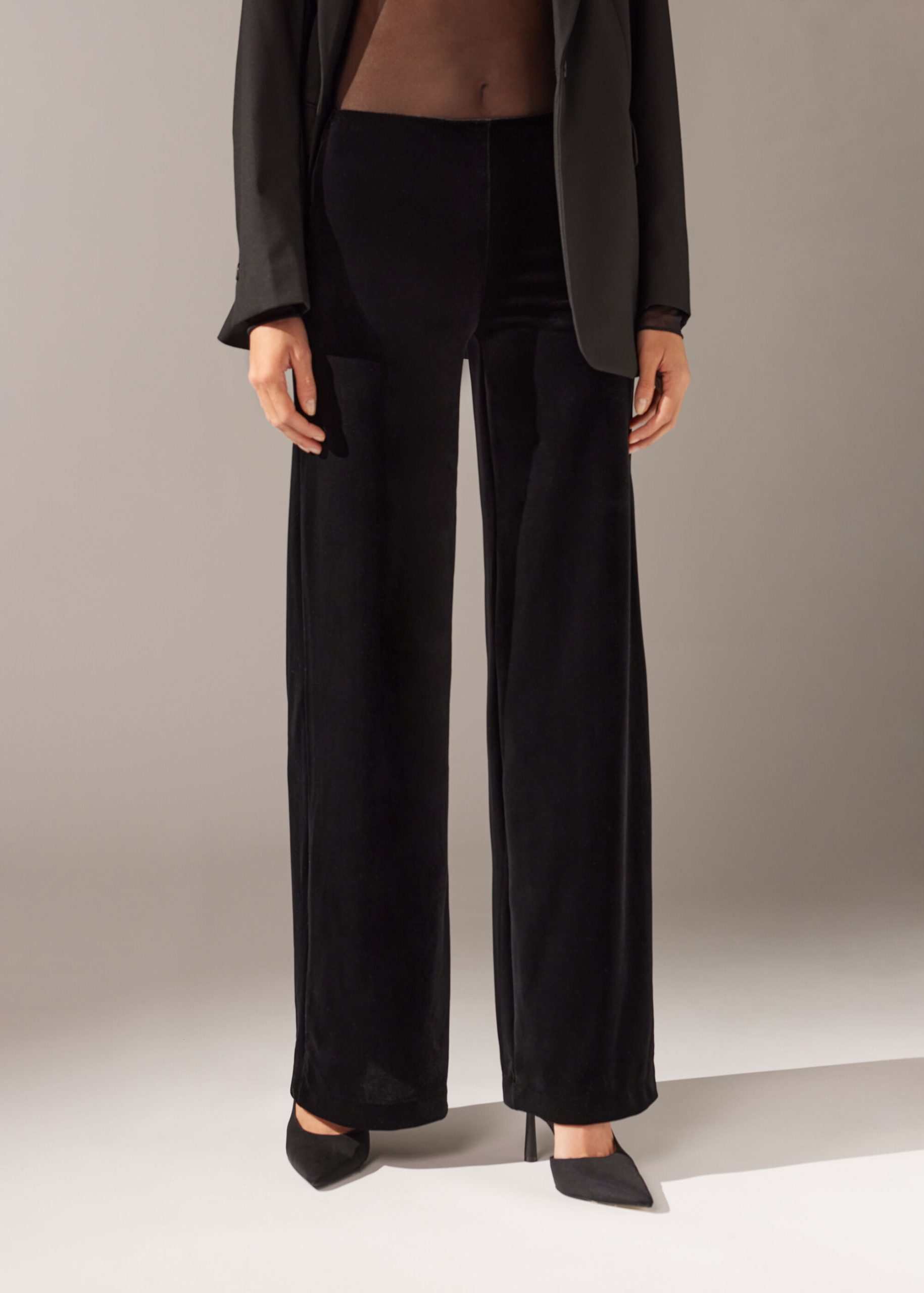 Calzedonia Women’s Leggings And Pants Velvet Palazzo Pants | 019 – Black