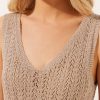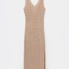 Maxi dress crocheted in refined golden lamè, featuring and elegant V neckline on both the front and back. The sophisticated side slits provide movement and lightness, exalting the silhouette. Perfect for sophisticated and versatile looks, ideal to wear on top of beachwear or for special chic appeal occasions.