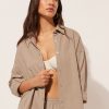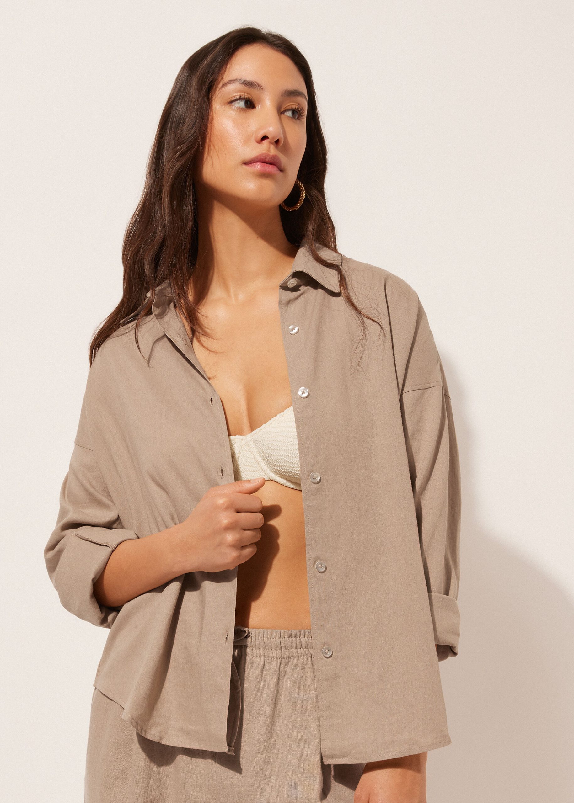 Calzedonia Women’s Swimwear And Cover-ups Cropped Linen And Viscose Shirt | 079e – Desert Beige