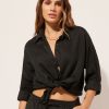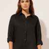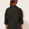 Calzedonia Women’s Swimwear And Cover-ups Cropped Linen Shirt | 894c – Black
