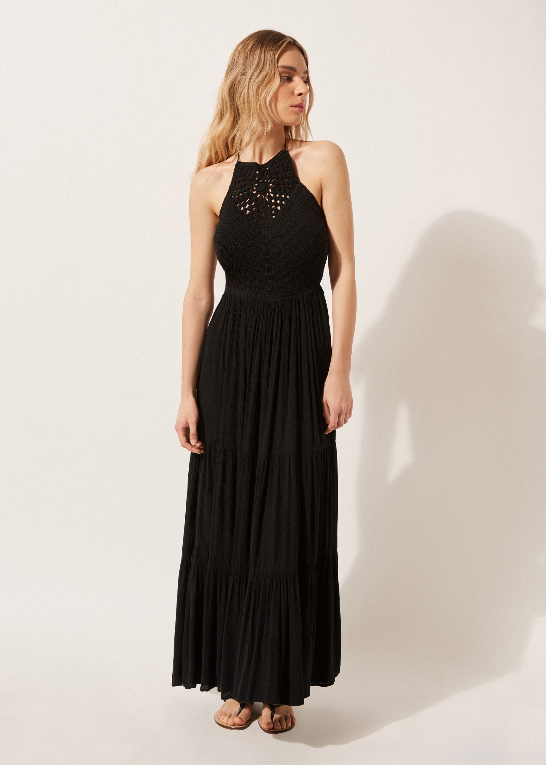 Calzedonia Women’s Swimwear And Cover-ups Long Dress With Crochet Bodice | 894c – Black