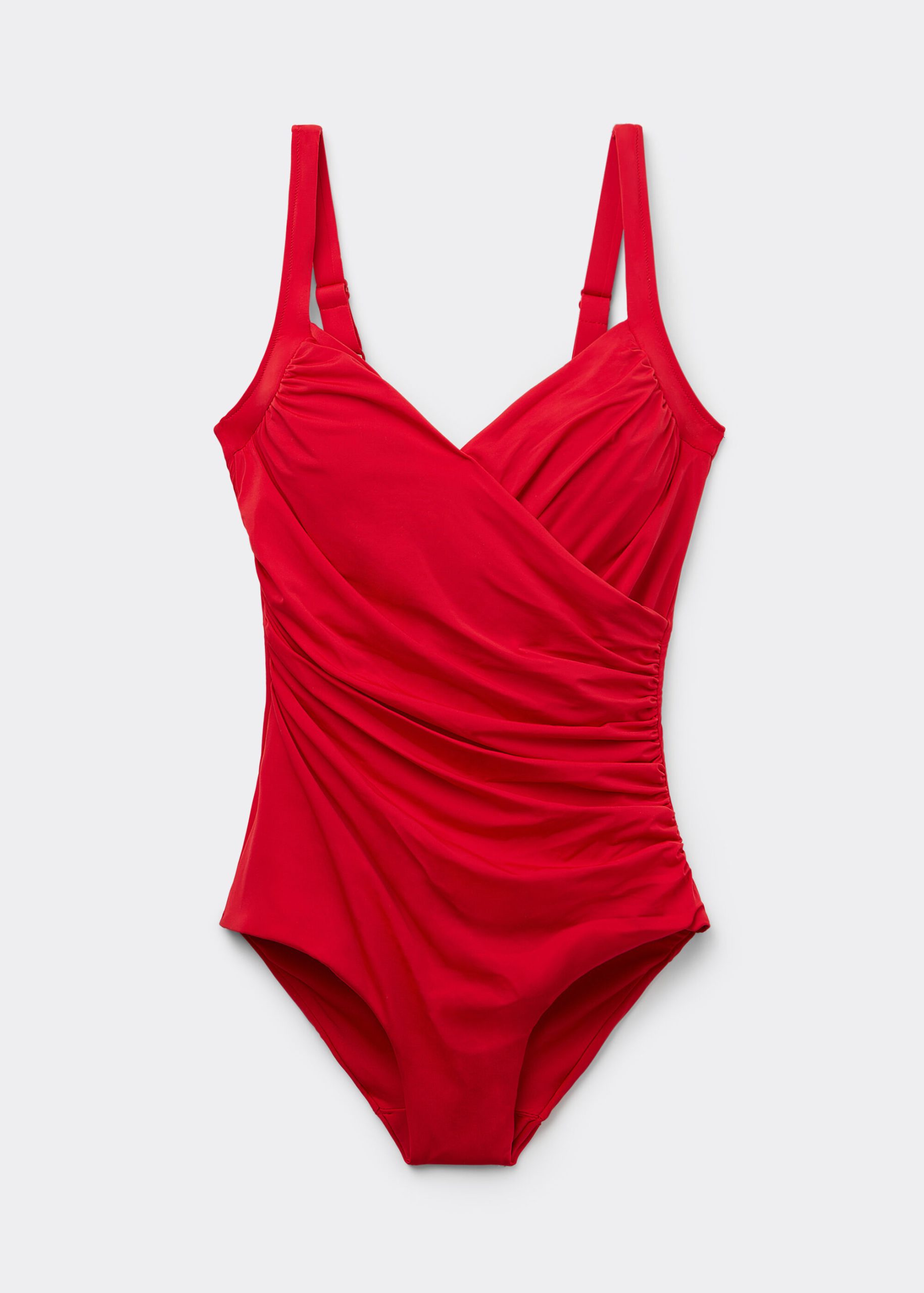 One-piece swimsuit with lightly padded cups and underwire. The crisscross draping shape and highlight the silhouette. Shaping effect on the abdomen. The extremely soft fabric makes it pleasant to wear, offering a light and comfortable feel on the skin. Adjustable straps. Fully lined in back. Regular bottom coverage in back.