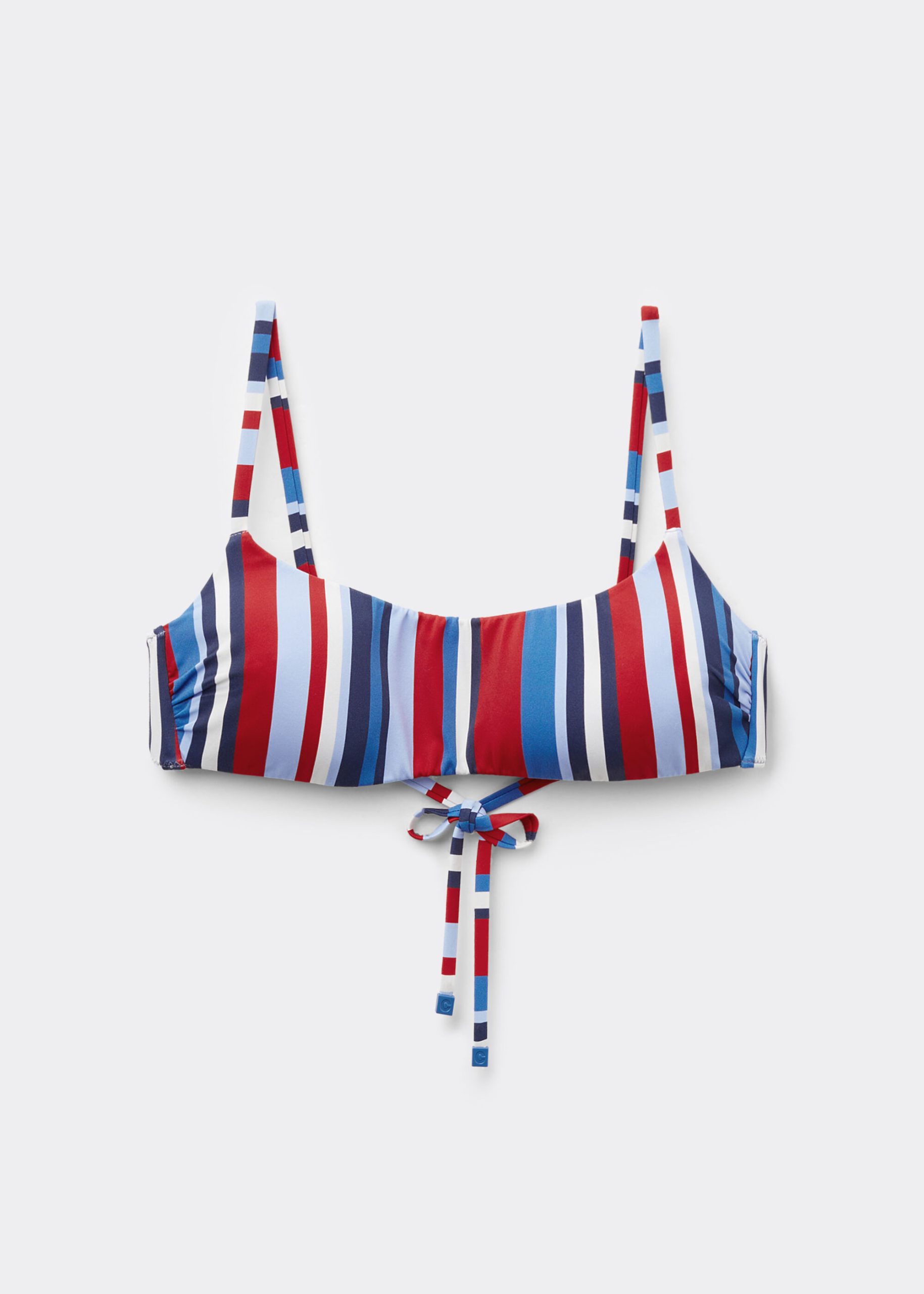 Wireless tank style bikini top with light padding that naturally shapes the bust and guarantees good support. Made from soft microfiber, the top is embellished with a vibrant multi-colored striped pattern, which adds a touch of freshness and color to the look. The side boning helps to support the bust. Adjustable thin shoulder straps. Back string tie closure.