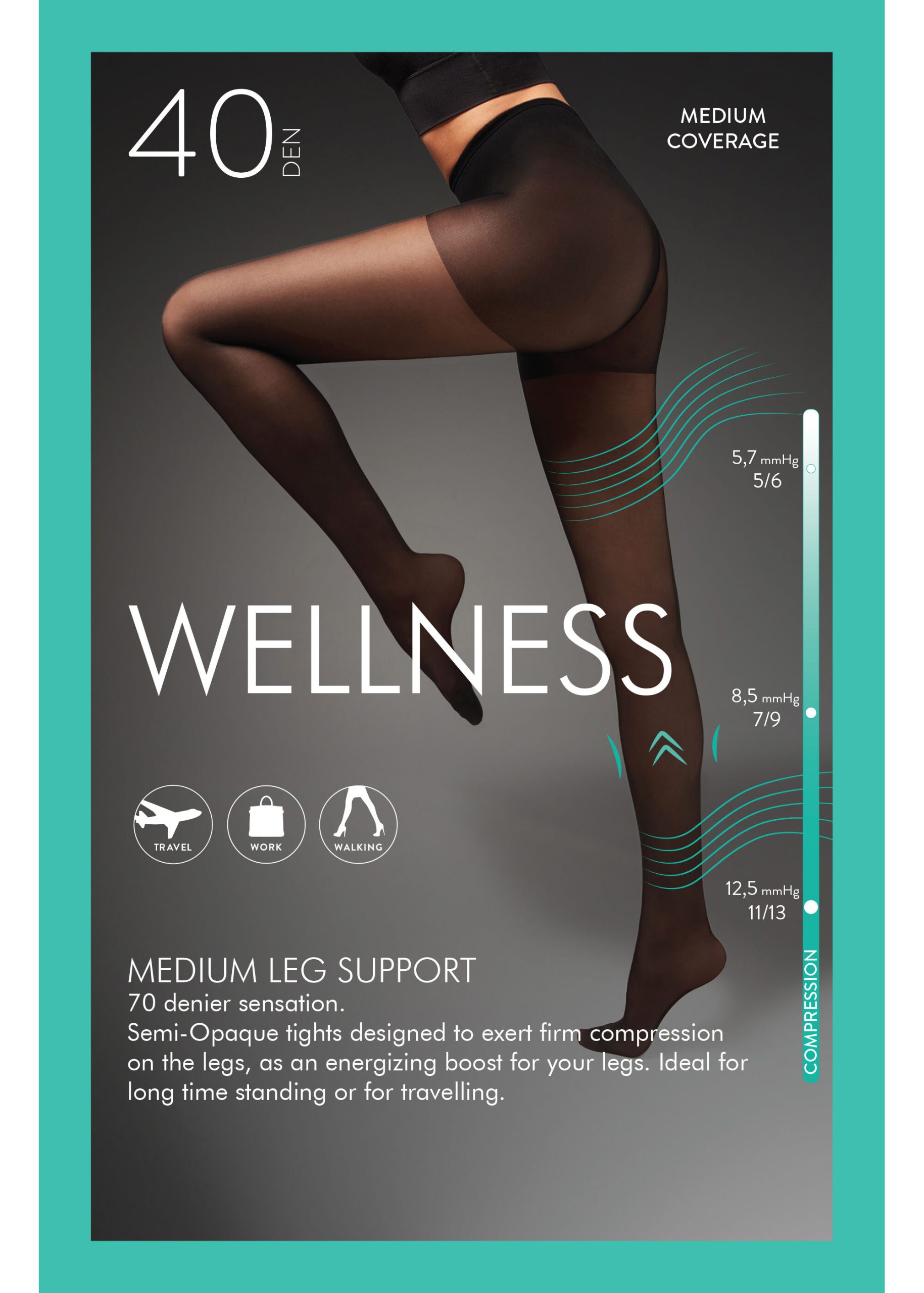 Designed to exert firm compression on the legs, for lightness and vitality. Ideal for anyone who spends a lot of time standing or for travelling. Sheer 40 denier, reinforced body and toe, flat seams and cotton gusset.