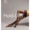 8 denier ultra sheer thigh-highs with a silicone lined lace top and invisible toes.