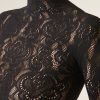 Floral motif mesh top with macramé effect to pair with coordinating tights MODC2150. It features a funnel neckline and long sleeves, providing an elegant and sophisticated look.