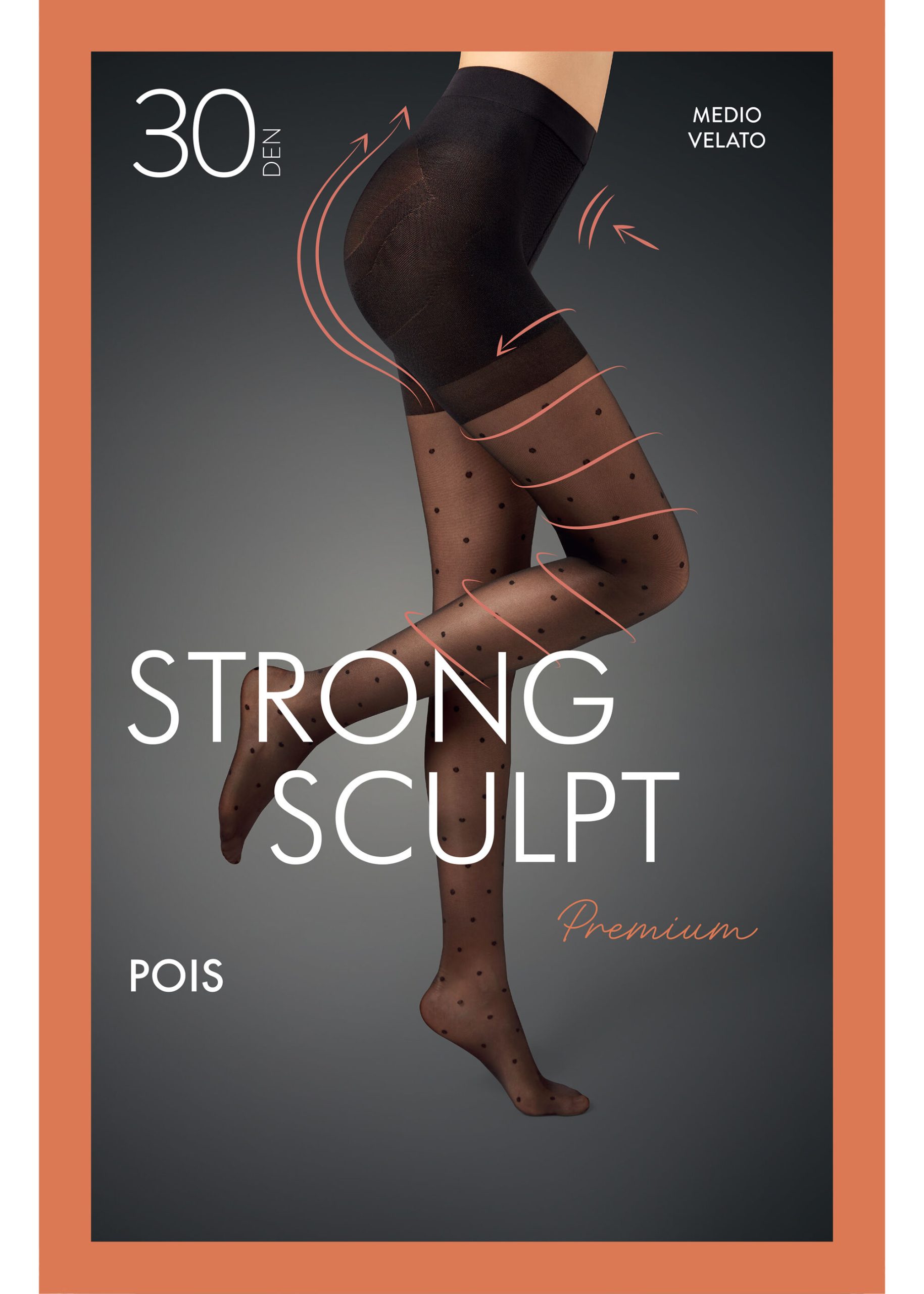30 denier sheer tights with polka dot pattern and graduated medium compression. The characteristics of the special fabric and design construction give a total shaper effect over the stomach, hips and buttocks, to enhance your figure. Invisible toe, flat seams and cotton gusset.