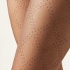 Women’s sheer 30 denier mesh tights with double diamond motif decorated with micro dots and featuring a cotton gusset.