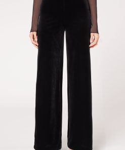 Calzedonia Women’s Leggings And Pants Velvet Palazzo Pants | 019 – Black